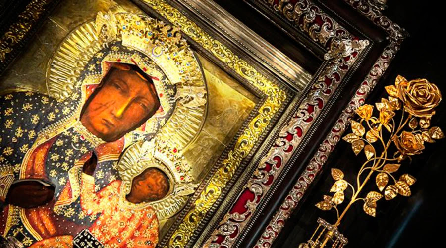 El icono de la Virgen de Czestochowa es uno de los más venerados en Polonia y Europa, y representa a la Virgen María con el Niño en brazos. A lo largo de la historia ha sufrido varios atentados que le han dejado marcas en el rostro y el cuello.